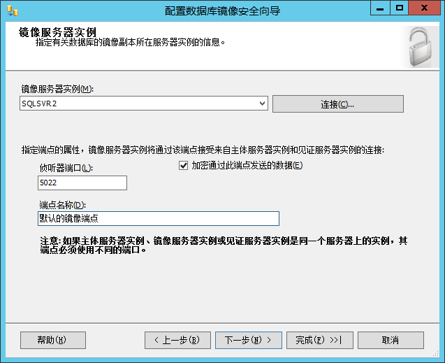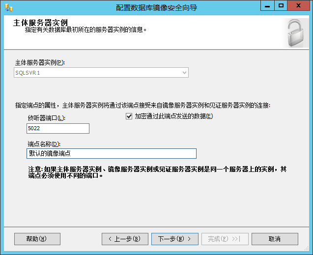 (4.4)主服务器实例与端口配置配置向导默认使用 5022 端口进行侦听。如果主体服务器已经手动创建了端点,配置向导将选取这个端点。