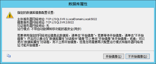 (4.7)开始镜像完成"配置安全性"过程后,配置向导自动询问是否立即开始镜像。若要立即开始镜像,则单击"开始镜像"。