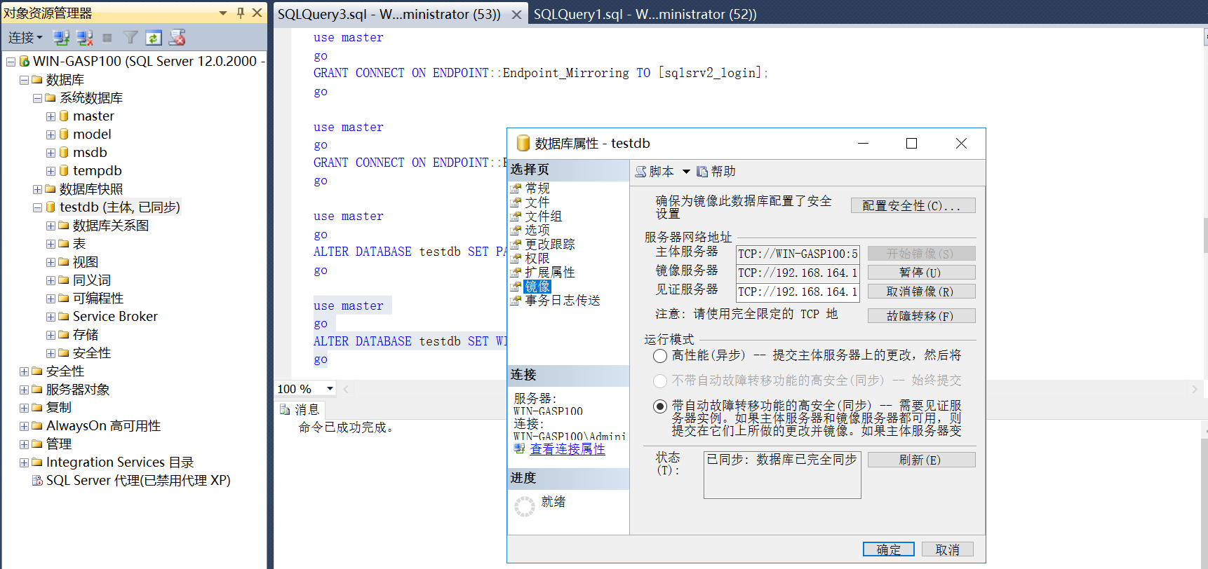 题目:sql server基于镜像服务器的主从搭建+认证服务器