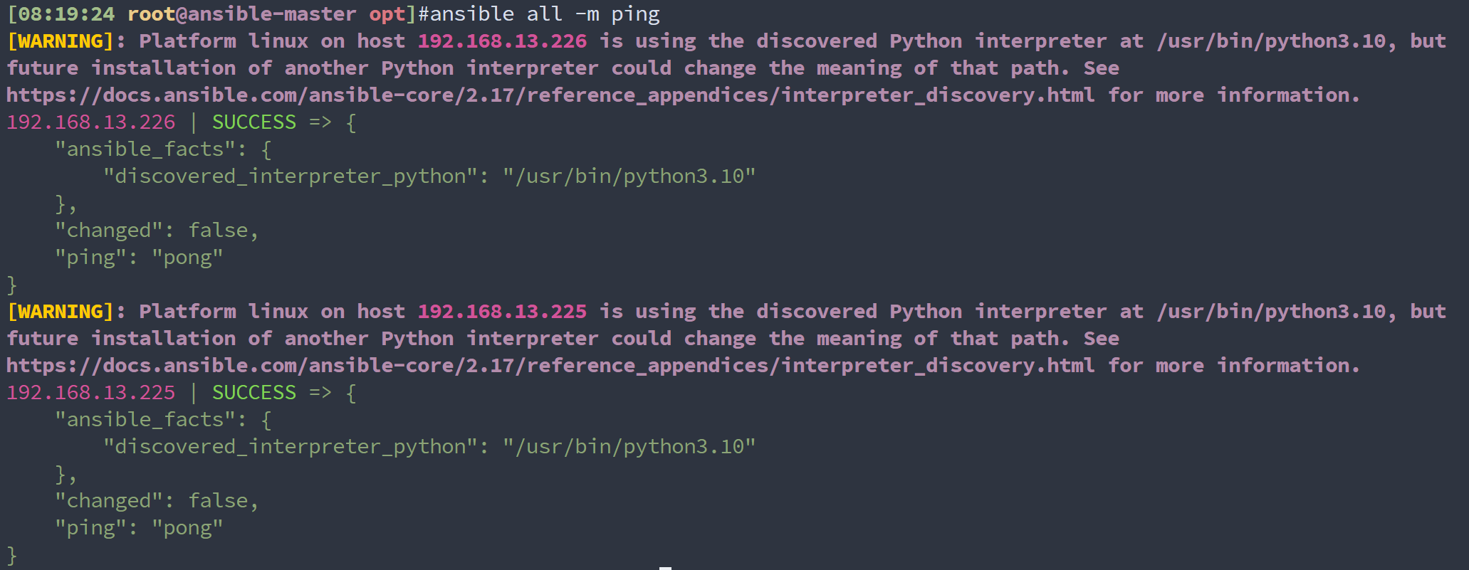 ansible all -m ping