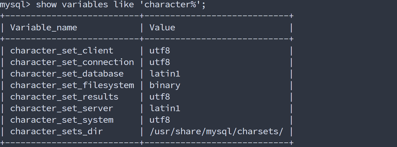 | character_set_server | latin1 |