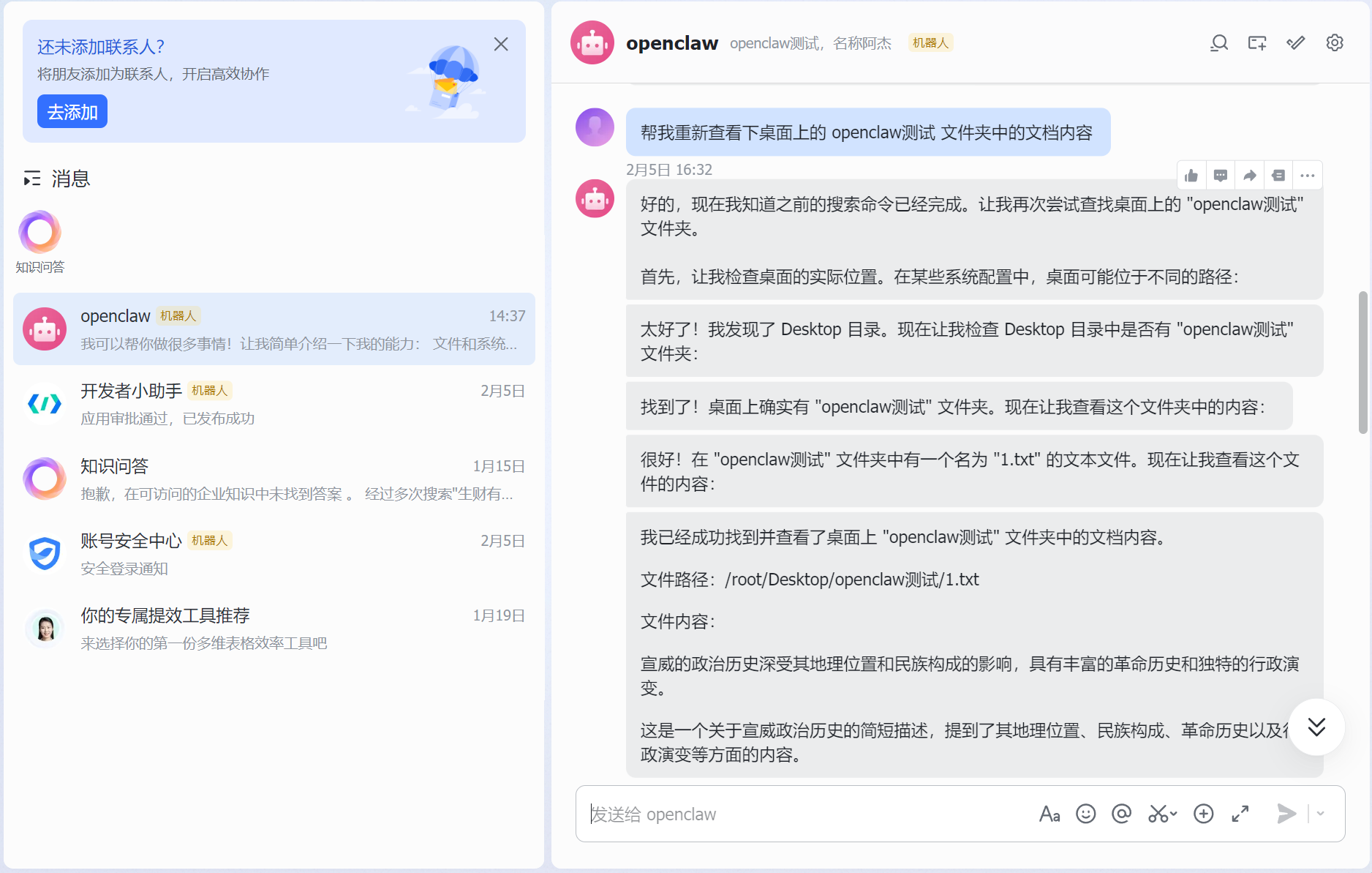 4.2.4 在飞书中与OpenClaw对话