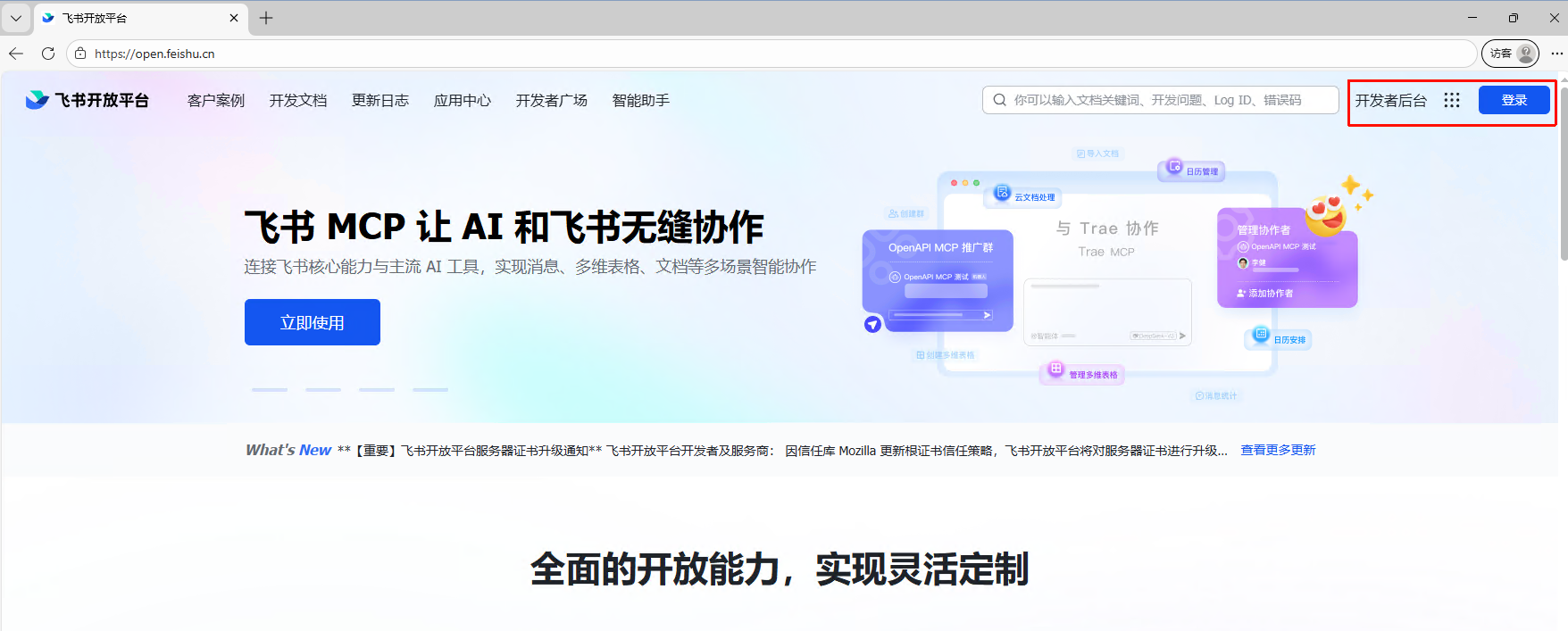登录并进入开发者后台