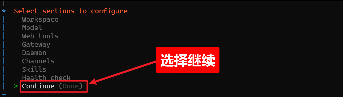 安装脚本执行完成后,会自动进入一个名为 onboard 的交互式设置向导,引导你完成初始配置。如果因为某些原因中断了向导,可以随时通过以下命令重新启动: