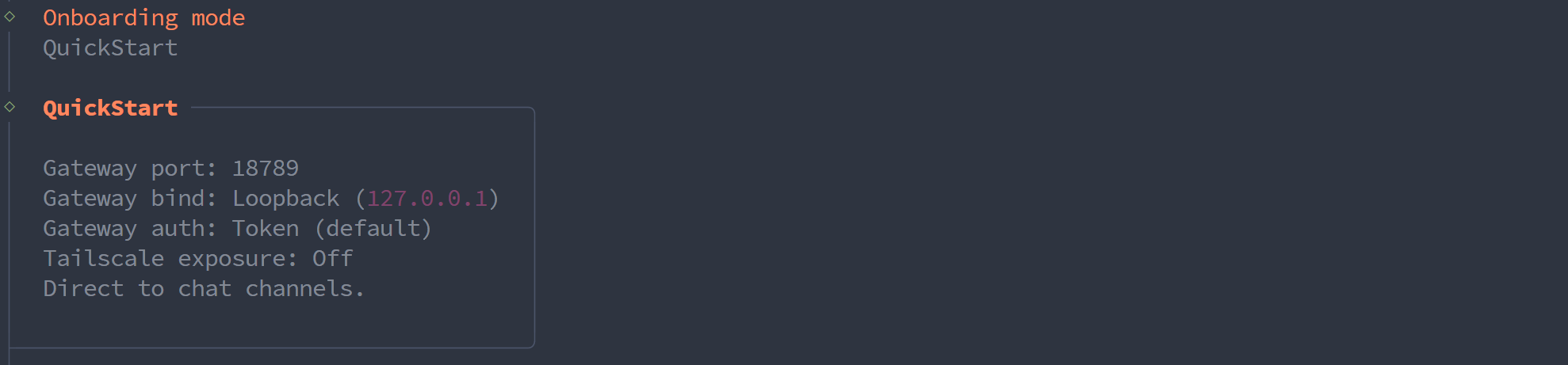 对于首次配置的用户,建议优先选择 QuickStart 模式——该模式以「最小配置+最快部署」为目标,可跳过非必要配置项,快速完成 OpenClaw 基础部署。