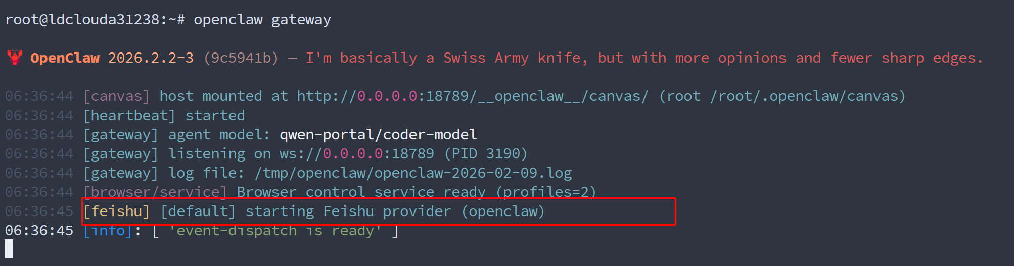 控制可以看到飞书插件已经配置成功